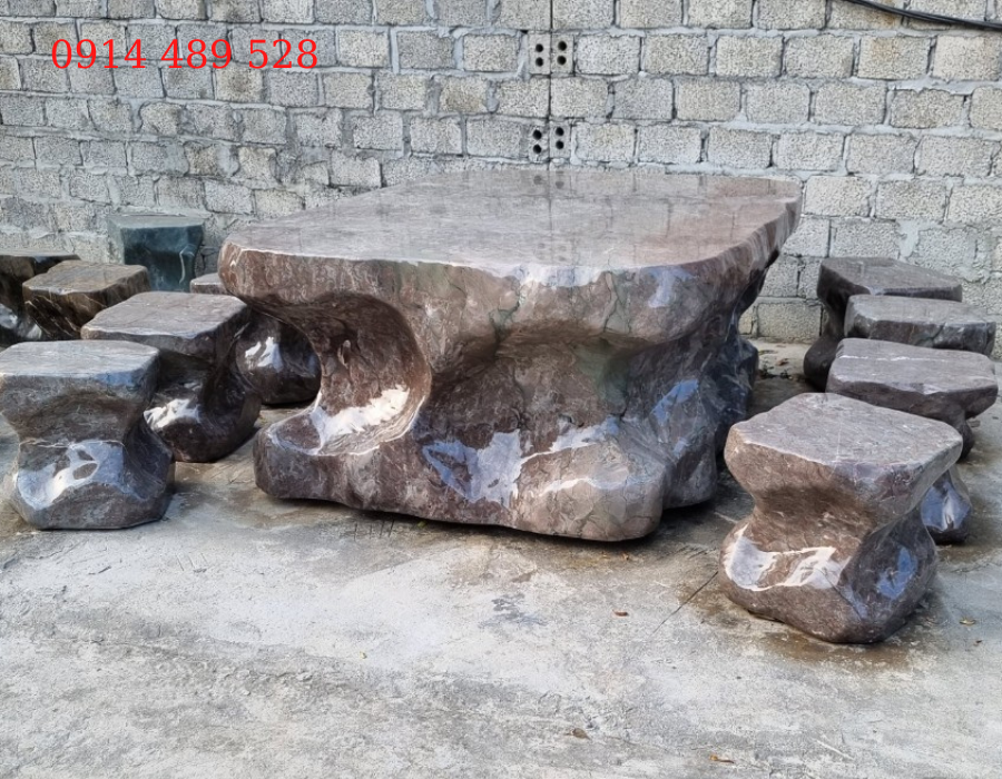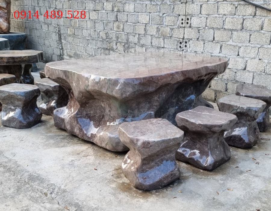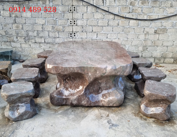 Bộ bàn ghế đá đỏ vân rồng 8 ghế