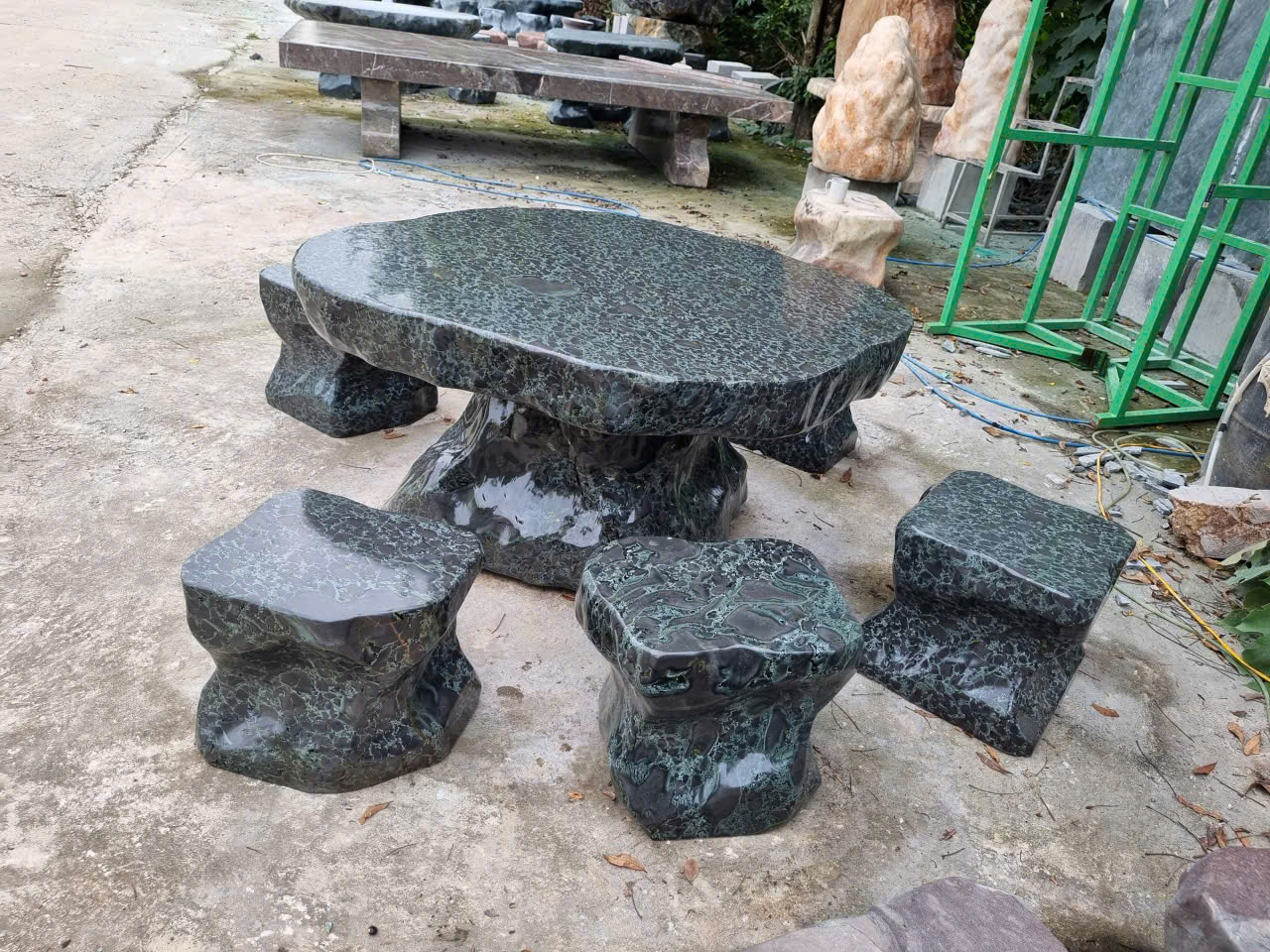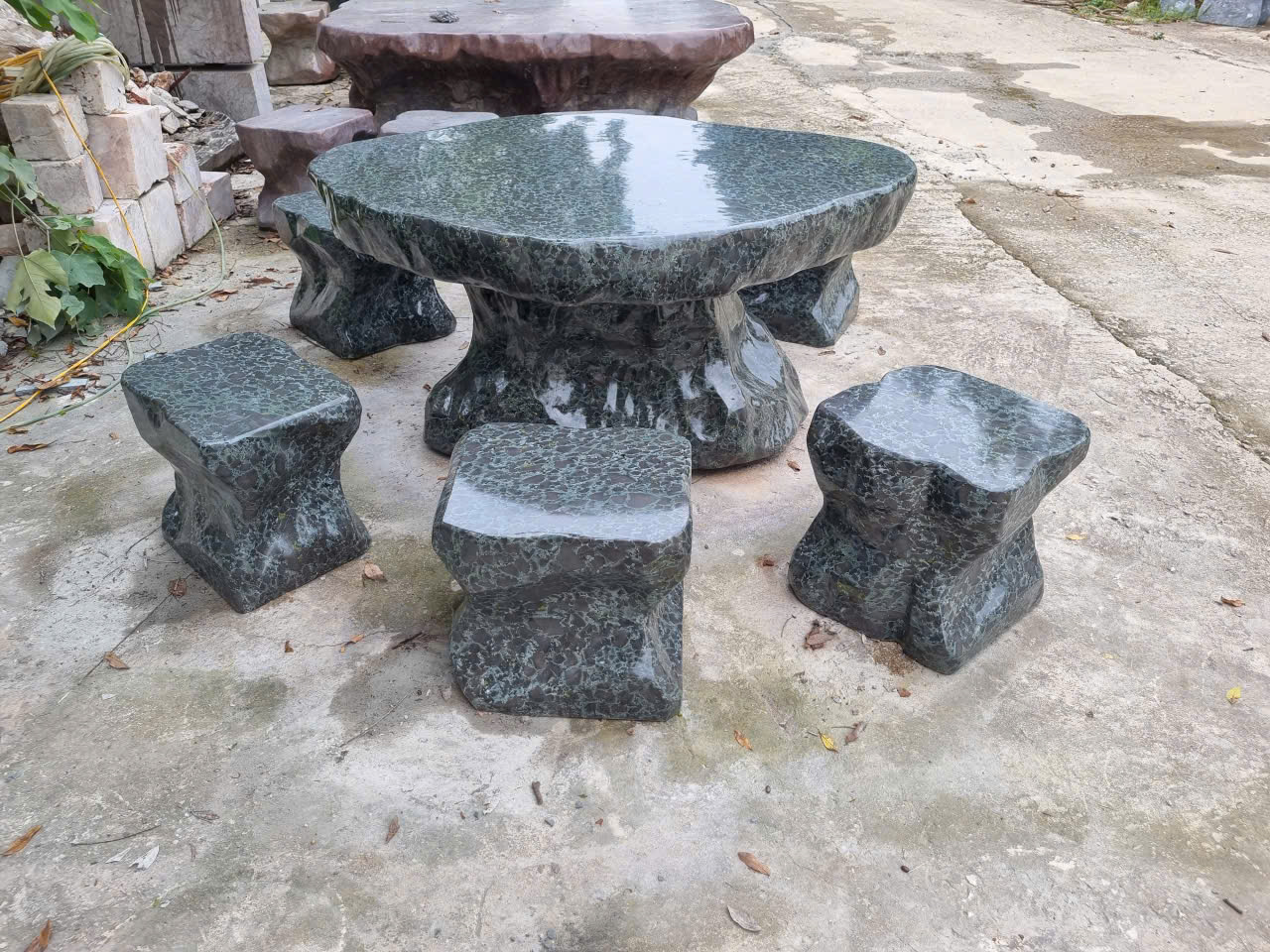 Bộ bàn ghế đá tự nhiên, bàn ghế đá nguyên khối, Bộ bàn ghế đá xanh Casidon