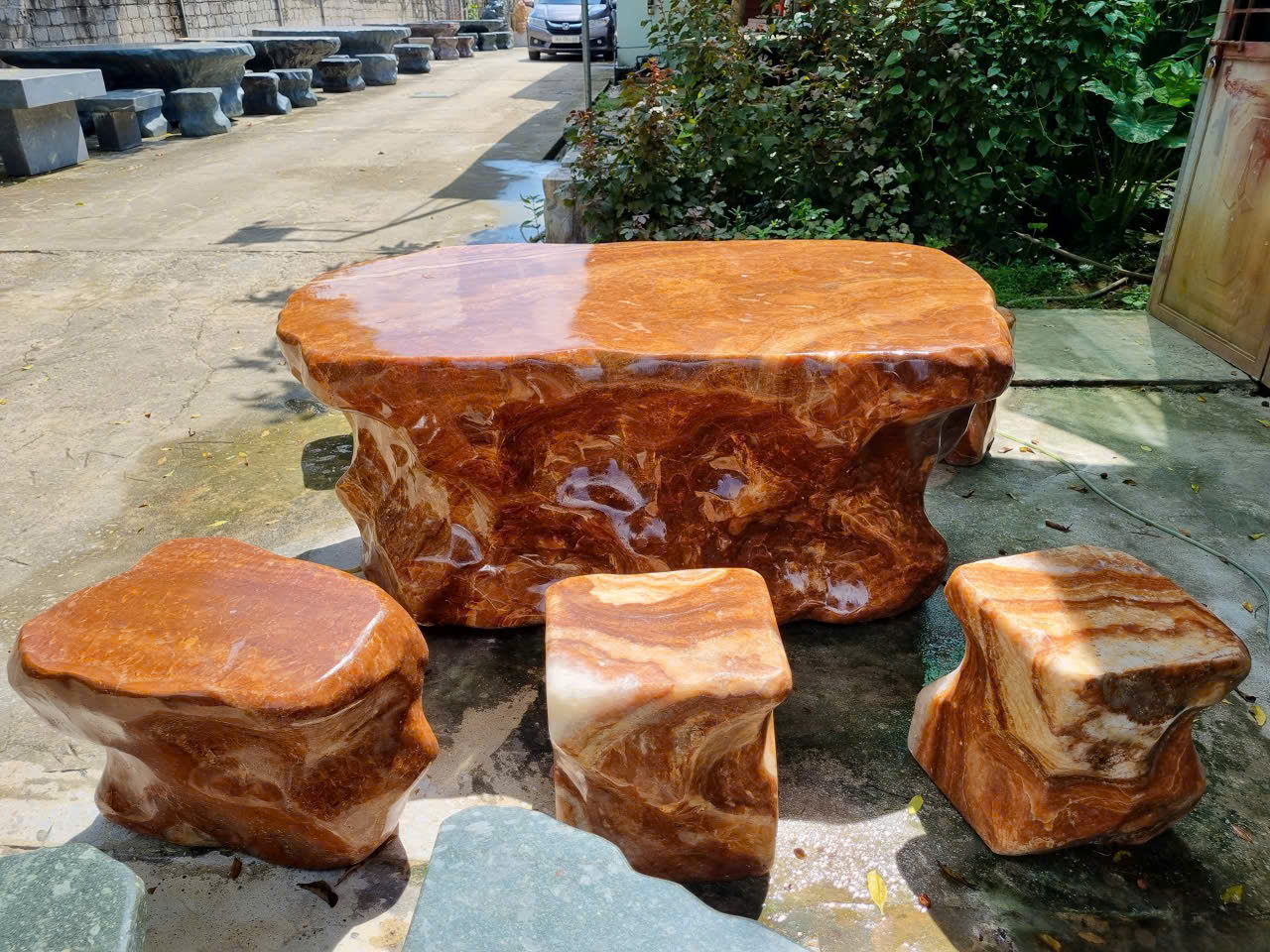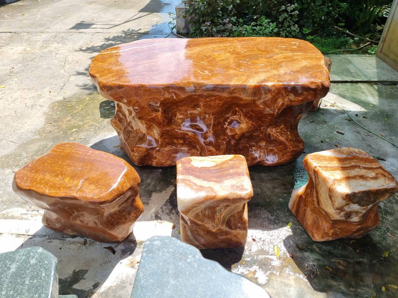 Bộ bàn ghế đá tự nhiên đá can xít vàng (thạch anh non) tự nhiên nguyên khối
