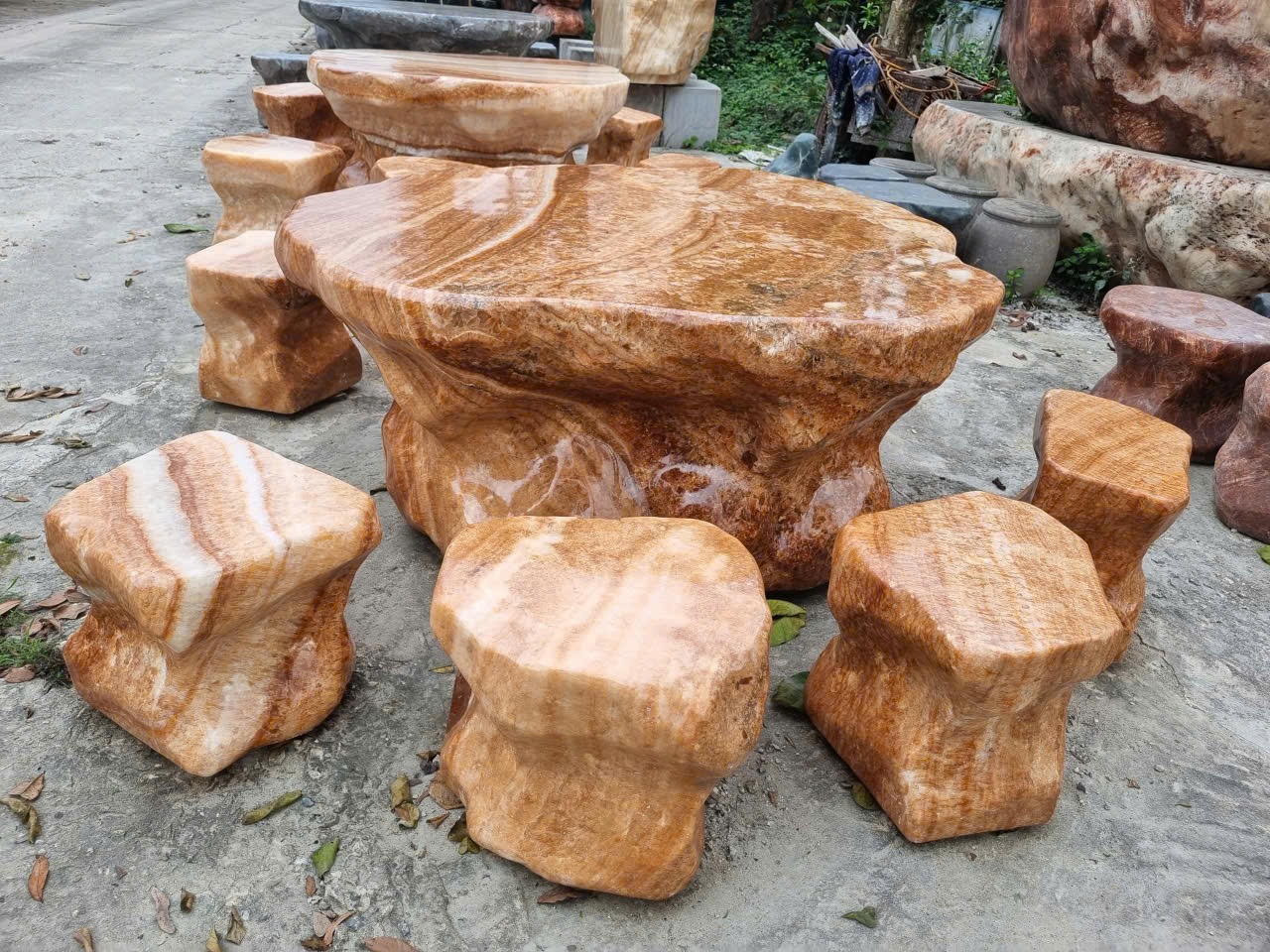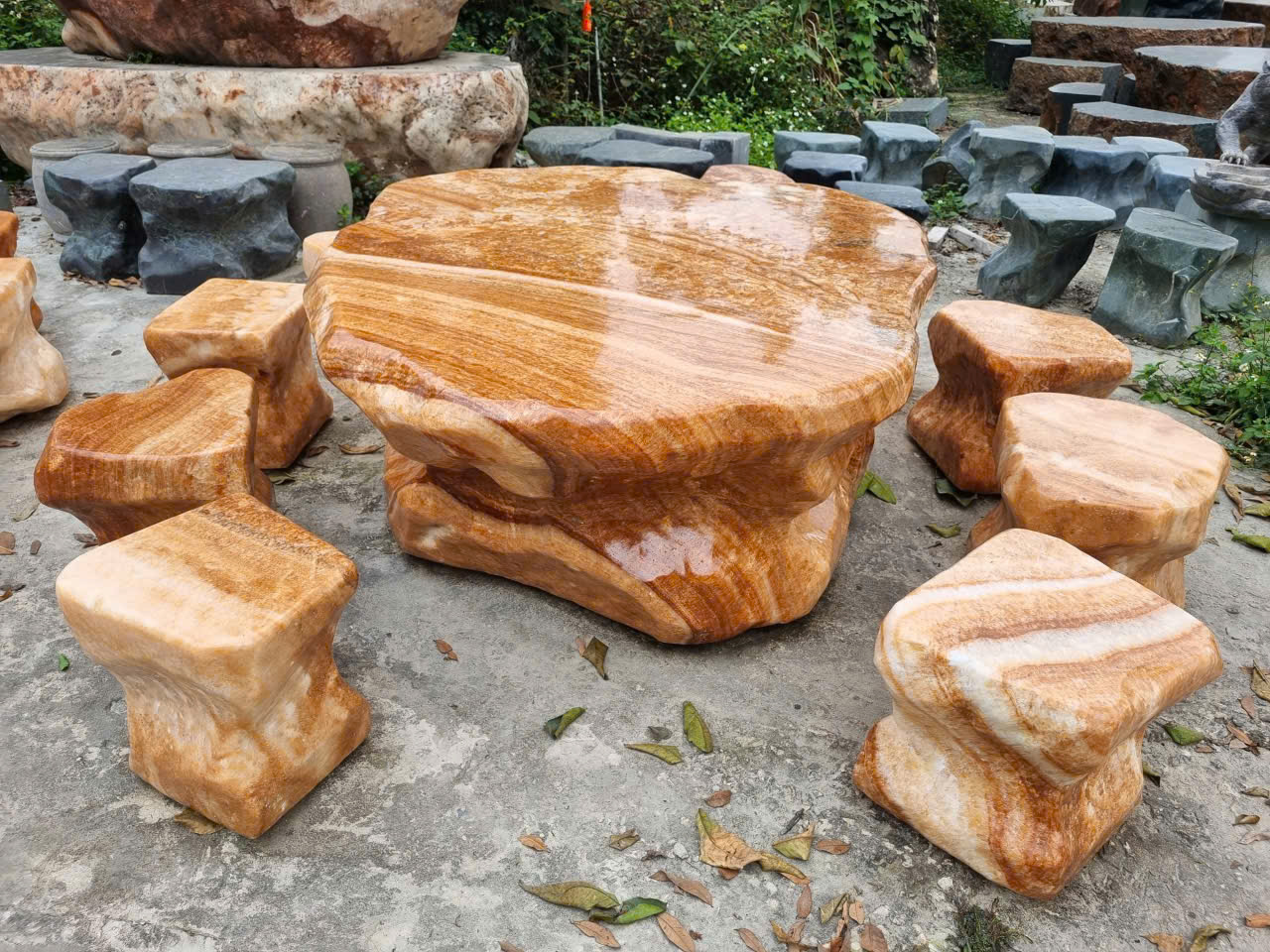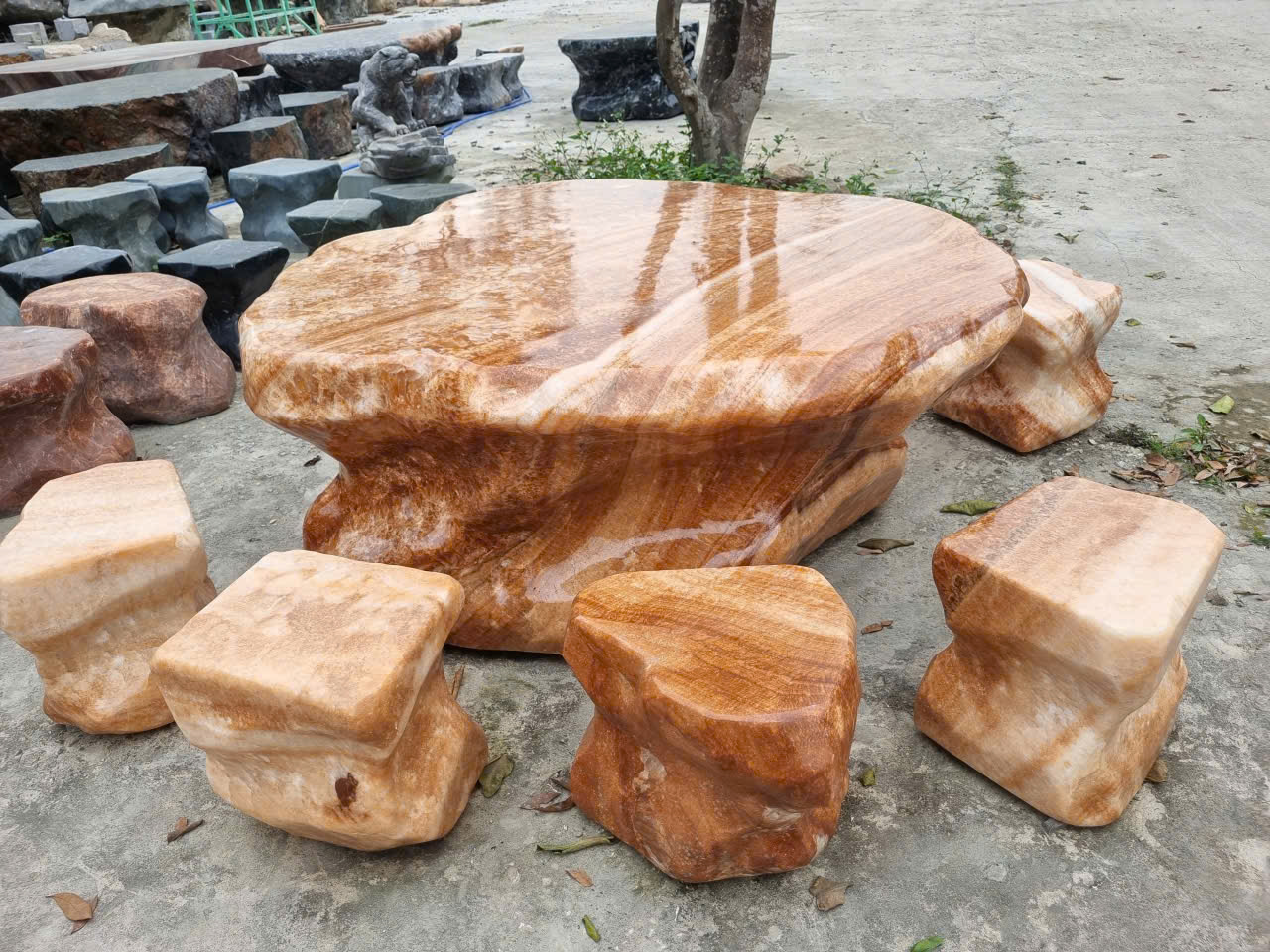 Bộ bàn ghế đá tự nhiên đá can xít vàng (thạch anh non) tự nhiên nguyên khối