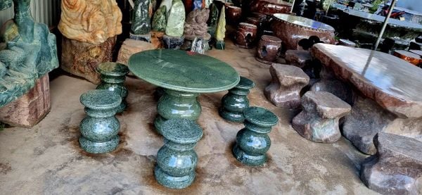 Bộ bàn ghế đá tự nhiên, đá nguyên khối, Bộ bàn tròn đá xanh cẩm thạch gồm 6 ghế