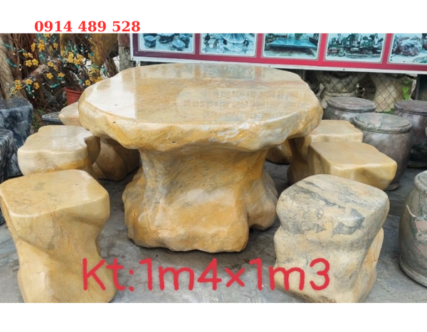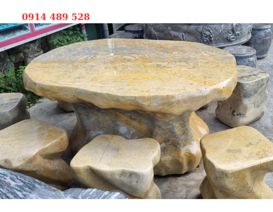 Bộ bàn ghế đá tự nhiên đá vàng đá thổ cẩm
